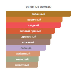 Базовые ноты: гваяковое дерево, дерево гуаяк, дубовый мох, листья табака, мох, опопанакс