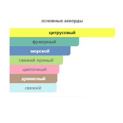 Верхние ноты: апельсин, бергамот, жасмин, лайм, лимон, мандарин